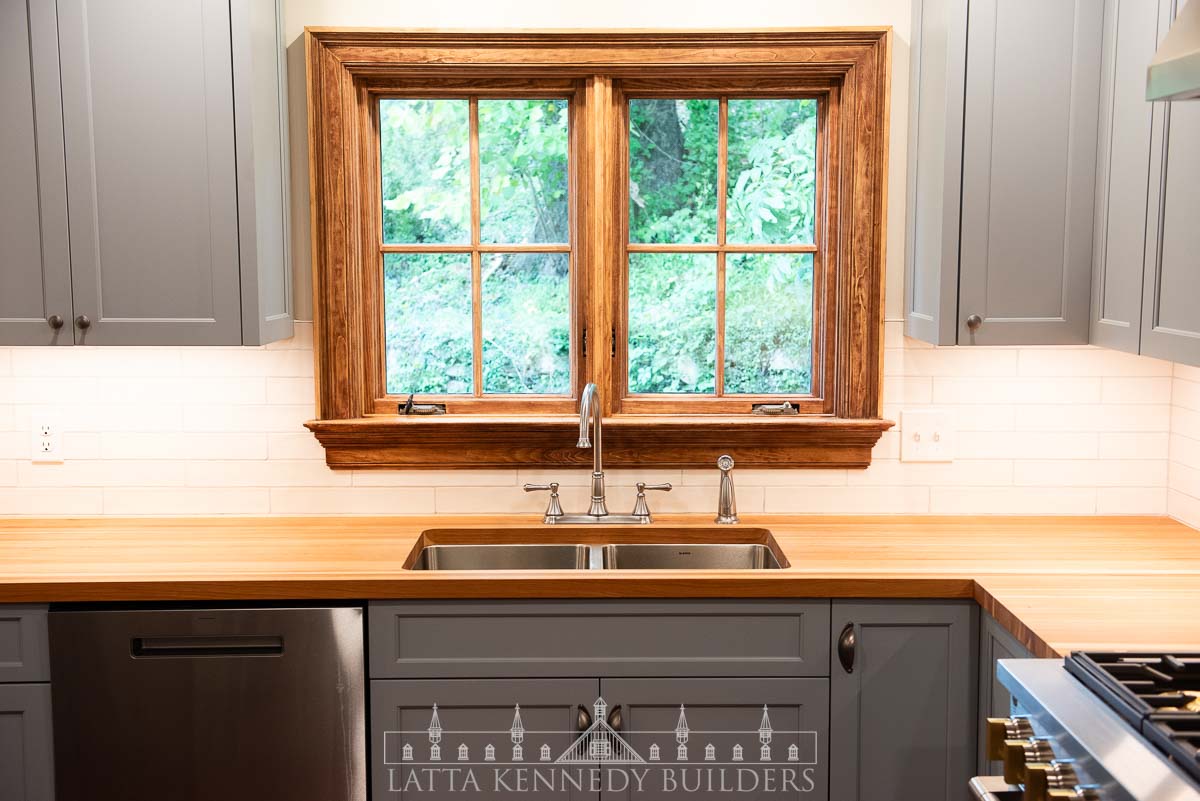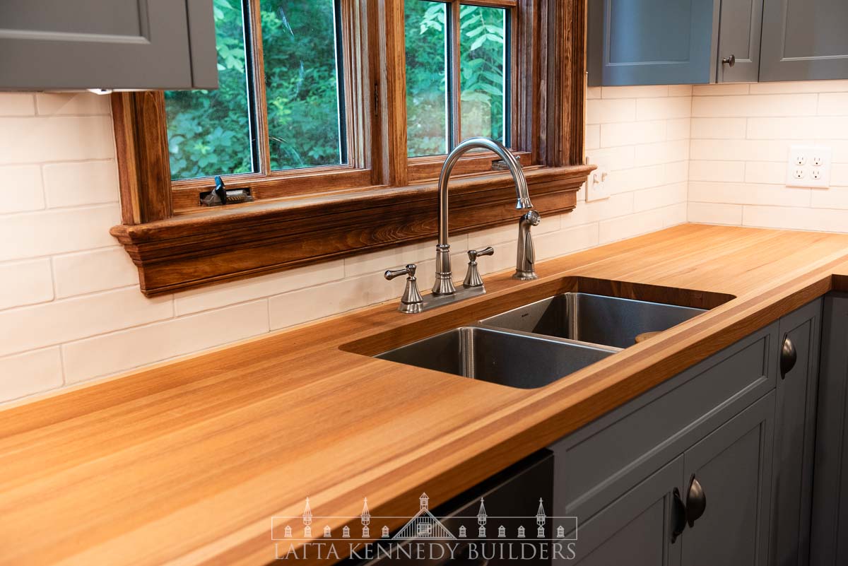 To complete the design, we installed custom maple perimeter countertops, adding natural beauty and durability to the workspace. The combination of handcrafted cabinetry, premium materials, and modern upgrades create a kitchen that is both functional and inviting, perfectly suited for cooking, entertaining, and family gatherings. This remodel showcases how expert craftsmanship and innovative design can transform a historic farmhouse into a modern culinary space while preserving its character!